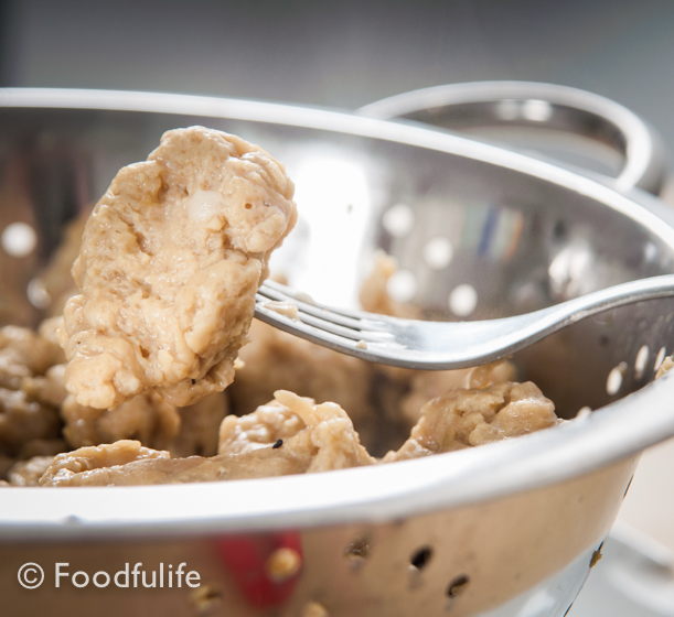 How to make seitan (piece of seitan on a fork, side view, close-up) Published on June 24, 2014 in How To Make Seitan (Home-made Meat Substitute)Full resolution (611 × 560) ← Previous