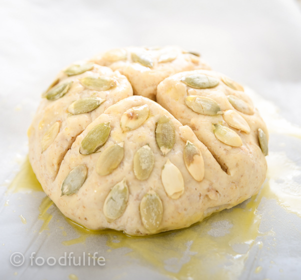 Step 4. Divide the dough into two parts, slash an X on the surface and let rise. Published on November 26, 2014 in Chickpea Flour Bread With Pumpkin SeedsFull resolution (602 × 560) ← Previous Next →